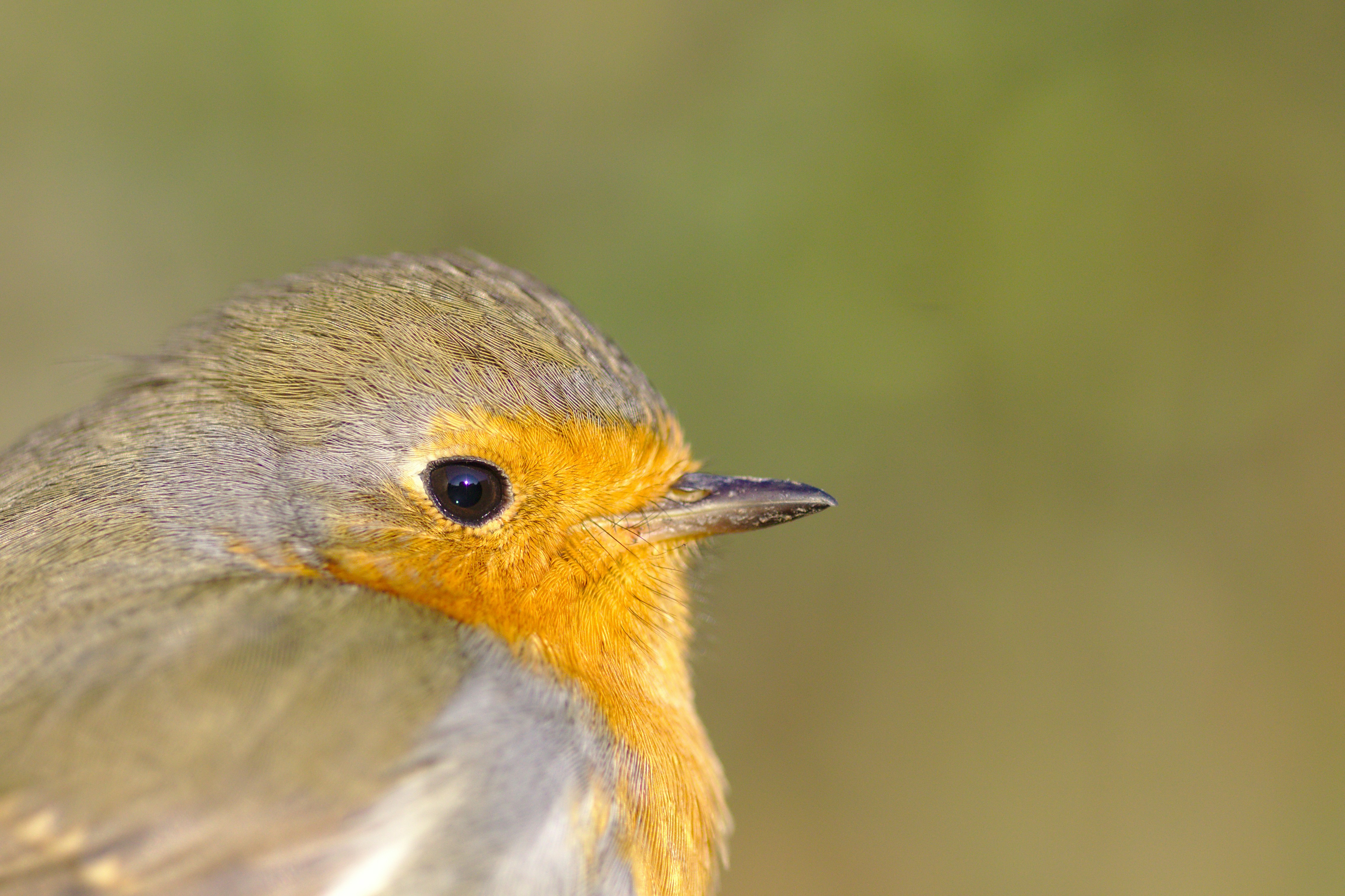 This robin crashed on one of my window. He was convulsing, but we managed to get him in a box, with some blanket to keep him warm enough to survive. One hour later, he was able to move, then left his box 30 minutes later. He just stand on a chair for 10 or 15 more minutes, allowing me to take very close portrait of this small bird. Very impressive to see the complexity of feathers !
