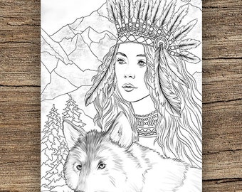 Wolf girl colouring pages