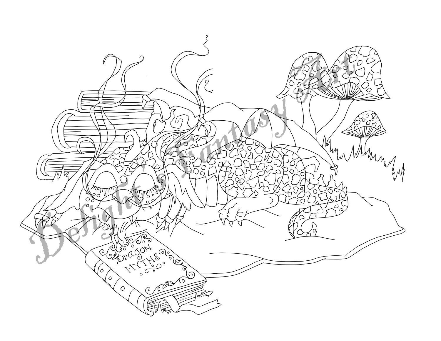 Drachenmythen, 8.5x11, Färbeseite, Baby-Drache, Drachenkunst, Drachenprint, niedlicher Drache, Drachen, Download, Bibliothekar, Buchliebhaber, Bücher